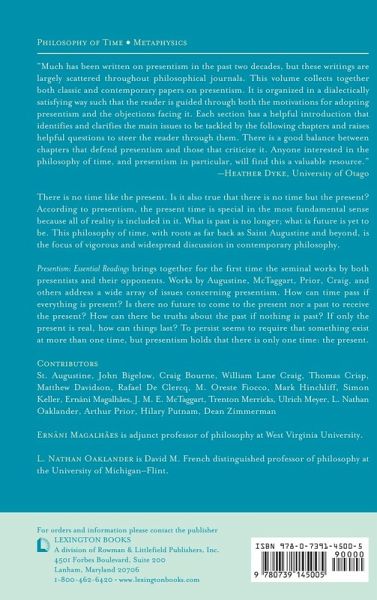Presentism: Essential Readings contains writings-classic and contemporary-that acquaint the reader with different versions of presentism, standard philosophical and scientific objections to presentism, and their attempted solutions. Detailed introductions to each part of the book make the discussions accessible to students and those unfamiliar with this fascinating and controversial philosophy.