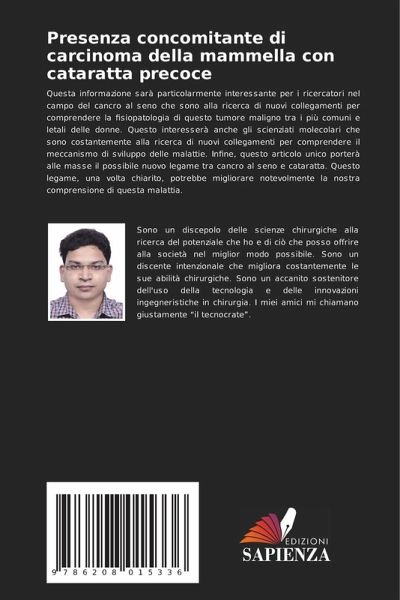Questa informazione sarà particolarmente interessante per i ricercatori nel campo del cancro al seno che sono alla ricerca di nuovi collegamenti per comprendere la fisiopatologia di questo tumore maligno tra i più comuni e letali delle donne. Questo interesserà anche gli scienziati molecolari che sono costantemente alla ricerca di nuovi collegamenti per comprendere il meccanismo di sviluppo delle malattie. Infine, questo articolo unico porterà alle masse il possibile nuovo legame tra cancro al seno e cataratta. Questo legame, una volta chiarito, potrebbe migliorare notevolmente la nostra comprensione di questa malattia.