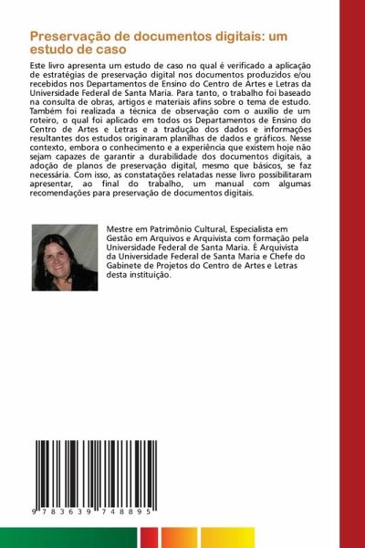 Este livro apresenta um estudo de caso no qual é verificado a aplicação de estratégias de preservação digital nos documentos produzidos e/ou recebidos nos Departamentos de Ensino do Centro de Artes e Letras da Universidade Federal de Santa Maria. Para tanto, o trabalho foi baseado na consulta de obras, artigos e materiais afins sobre o tema de estudo. Também foi realizada a técnica de observação com o auxílio de um roteiro, o qual foi aplicado em todos os Departamentos de Ensino do Centro de Artes e Letras e a tradução dos dados e informações resultantes dos estudos originaram planilhas de dados e gráficos. Nesse contexto, embora o conhecimento e a experiência que existem hoje não sejam capazes de garantir a durabilidade dos documentos digitais, a adoção de planos de preservação digital, mesmo que básicos, se faz necessária. Com isso, as constatações relatadas nesse livro possibilitaram apresentar, ao final do trabalho, um manual com algumas recomendações para preservação de documentos digitais.