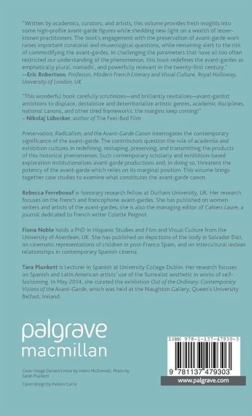 "Preservation, Radicalism, and the Avant-Garde Canon aims to investigate radical art in order to further critical thinking about the avant-garde. ... The editors have fully conceptualized the book and skillfully chosen well-versed scholars across disciplines. The objects of study are appropriate and the prose is readable." (Carol Martin, Theatre Journal, Vol. 69 (1), March, 2017)