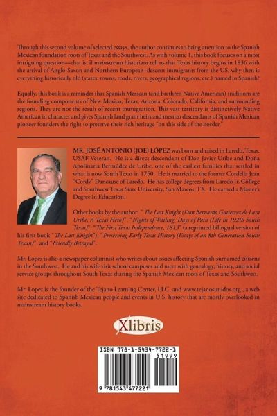 Through this second volume of selected essays, the author continues to bring attention to the Spanish Mexican foundation roots of Texas and the Southwest. As with volume 1, this book focuses on a most intriguing questionthat is, if mainstream historians tell us that Texas history begins in 1836 with the arrival of Anglo-Saxon and Northern Europeandescent immigrants from the US, why then is everything historically old (states, towns, roads, rivers, geographical regions, etc.) named in Spanish? Equally, this book is a reminder that Spanish Mexican (and brethren Native American) traditions are the founding components of New Mexico, Texas, Arizona, Colorado, California, and surrounding regions. They are not the result of recent immigration. This vast territory is distinctively Native American in character and gives Spanish land grant heirs and mestizo descendants of Spanish Mexican pioneer founders the right to preserve their rich heritage on this side of the border.