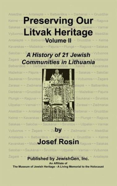 Josef Rosin's "Preserving Our Litvak Heritage-Volume II" is a monumental work documenting the history of 21 Jewish communities in Lithuanaia from their inception to their total destruction in 1941 at the hands of the Nazis and their Lithuania helpers. Rosin gathered his material from traditional sources, archives, public records, and remembrance books. He has enriched and enhanced the entry for each community with personal memoirs and contributions from widely dispersed survivors who opened family albums and shared treasured photographs of family and friends. He made use of sources originally written in Hebrew, Yiddish, Lithuanian, German and Russian. In over 300 pages, Rosin documents each community from its beginning until World War I, through the years of Independent Lithuania (1918-1940), and finally during the indescribable Nazi annihilation of nearly all of Lithuanian Jewry. Most impressive is the record of cultural richness, the important town personalities, the welfare institutions, the glorious Hebrew educational system of the Tarbuth elementary schools and the Yavneh high schools, the world famous Telz and Ponevezh Yeshivoth (in the towns of Telsiai and Panevezys), the Yiddish press and other significant events of the period. Rosin has provided a documentary and a testament to once vibrant communities almost totally destroyed but which come alive again in the pages of this book. This publication is by the "Yizkor Books in Print Project" of JewishGen, Inc., List of towns: Alsiad Antalept Balbirishok Dorbyan Gruzd Kelem Kovarsk Mazheik Payure Plungyan Rogeve Salok Salat Shirvint Shukyan Ushpol Vizhun Vorne Ezheremi Zhager Zhezhmer 332 pages with Illustrations. Hard Cover