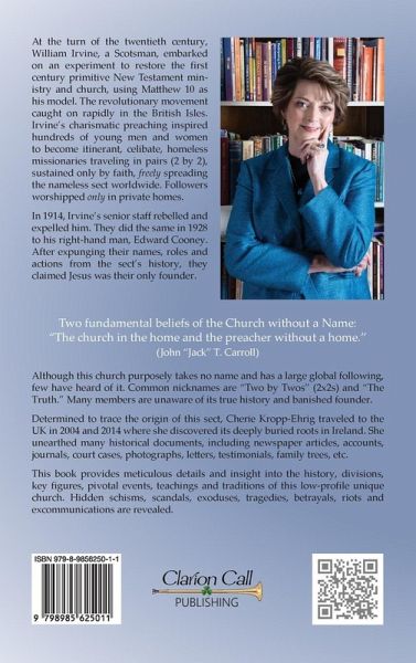 At the turn of the twentieth century, William Irvine, a Scotsman, embarked on an experiment to restore the first century primitive New Testament ministry and church, using Matthew 10 as his model. The revolutionary movement caught on rapidly in the British Isles. Irvine's charismatic preaching inspired hundreds of young men and women to become itinerant, celibate, homeless missionaries traveling in pairs (2 by 2), sustained only by faith, freely spreading the nameless sect worldwide. Followers worshipped only in private homes. Two fundamental beliefs of the Church without a Name: The church in the home and the preacher without a home. (John "Jack" T. Carroll) In 1914, Irvine's senior staff rebelled and excommunicated him. They did the same in 1928 to his right-hand man, Edward Cooney. After expunging their names, roles and actions from the sect's history, they claimed Jesus was their only founder. Although this church purposely takes no name and has a large global following, few have heard of it. Common nicknames are "Two by Twos" (2x2s) and "The Truth." Many members are unaware of its true history and banished founder. Determined to trace the origin of this sect, Cherie Kropp-Ehrig traveled to the UK in 2004 and 2014 where she discovered its deeply buried roots in Ireland. She unearthed many historical documents, including newspaper articles, accounts, journals, court cases, photographs, letters, testimonials, family trees, etc. This book provides meticulous details and insight into the history, divisions, key figures, pivotal events, teachings and traditions of this low-profile, unique church. Hidden schisms, scandals, exoduses, tragedies, betrayals, riots and ex-communications are revealed.