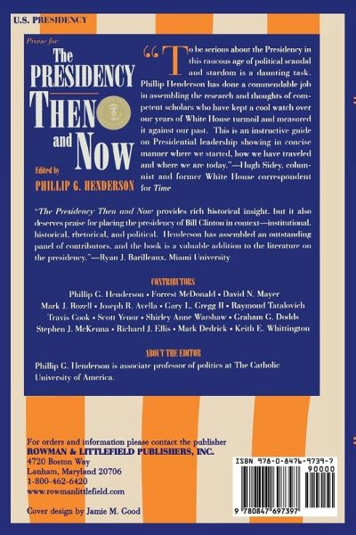 In The Presidency Then and Now, leading political scientists and historians assess the development of the presidency and its role in today's political landscape. The questions addressed in this wide-ranging volume include: How has the doctrine of separation of powers evolved? How have presidential campaigns and presidential oratory influenced the constitutional character of the institution? How does the scandal-driven press coverage of the post-Vietnam and post-Watergate presidency compare with the partisan press of the early republic? Among other topics, the contributors examine the early precedents and modern manifestations of the executive veto, executive privilege, and presidential use of force doctrine, and chart the shift from a constitutionally circumspect and constrained chief executive toward the modern notion of a plebiscitary presidency. The Presidency Then and Now assesses several key trends in presidential leadership including the recent movement toward a policy-centered presidency in which detailed policy development has at times supplanted broad vision and historically informed judgment. Other essays address such topics as the transformation of the Cabinet from a body whose members possessed stature equal to the president to a largely symbolic group that has been replaced in its advisory capacity by the White House staff. The Presidency Then and Now makes a case for returning to constitutional, reasoned deliberation and replacing modern fixation on 'celebrity' status with the founders' notion of 'stature.' By drawing comparisons between the old and the new, The Presidency Then and Now offers timely and incisive insights that will appeal not only to scholars of the presidency but to historians and general readers interested in the constitutional foundations, philosophical debates, and key political developments that have affected the presidential office over time.