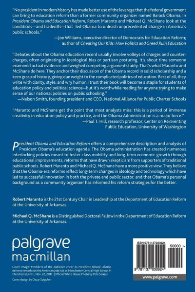 "Debates about the Obama education record usually involve volleys of charges and counter-charges, often originating in ideological bias or partisan posturing. It's about time someone examined actual evidence and weighed competing arguments fairly. That's what Maranto and McShane do here. They anchor their discussion of the Obama record in solid scholarship and a keen grasp of history, giving due weight to the complicated politics of education. Best of all, they writewith clarity, style, and wry humor. I trust their book will become a staple for students of education policy and political science but it's worthwhile reading for anyone trying to make sense of our national policies on public schooling." - Nelson Smith, founding president and CEO, National Alliance for Public Charter Schools