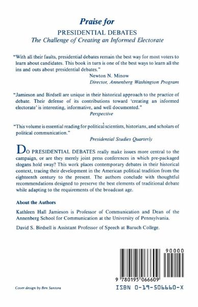 How important are presidential debates today? To answer this question, the authors place modern debates in their cultural and historical context, tracing their origins and development in the American political tradition, from the eighteenth century to the present, and concluding with some thoughtful suggestions for improving their current effectiveness.