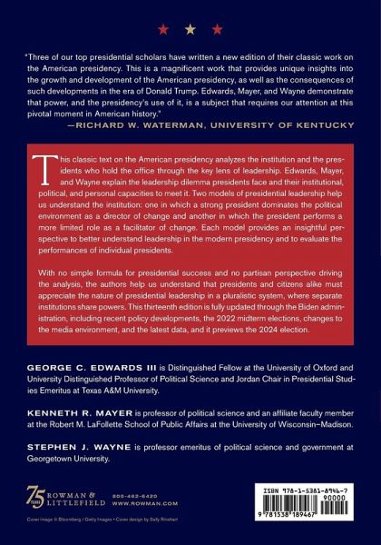 This classic text on the American presidency analyzes the institution and the presidents who hold the office through the key lens of leadership. The thirteenth edition is fully updated through the Biden administration, with recent policy developments, the 2022 midterm elections, changes to the media environment, and the latest data.
