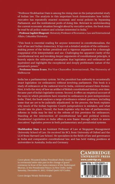 India has a parliamentary system. Yet the president has authority to occasionally enact legislation (or ordinances) without involving parliament. This book is a study of ordinances at the national level in India, centred around three themes. First, it tells the story of how an artefact of British constitutional history, over time, became part of India's legislative system. Second, it offers an empirical account of the ways in which presidents have resorted to ordinances in post-independence India. Third, the book analyses a range of ordinance-related questions, including some that are yet to be judicially adjudicated. In the process, the book explains why much of India's Supreme Court's jurisprudence is mistaken, and what should take its place. Overall, the book explains why the fate of parliamentary reforms in India may be tied to the reform of this provision for ordinances. Presidential Legislation in India offers a new frame through which to assess the executive's legislative powers both in parliamentary and presidential systems.