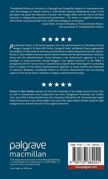 "Presidential Policies on Terrorism is a thorough and thoughtful analysis of counterterrorism tools from Reagan to Obama. Starr-Deelen explores fundamental issues of the principles that guide the allocation of power over foreign affairs and the role of all three branches in safeguarding constitutional government. She draws on insightful interviews with scholars and policymakers from within the intelligence community." - Louis Fisher, Scholar in Residence, The Constitution Project, USA and author of Presidential War Powers