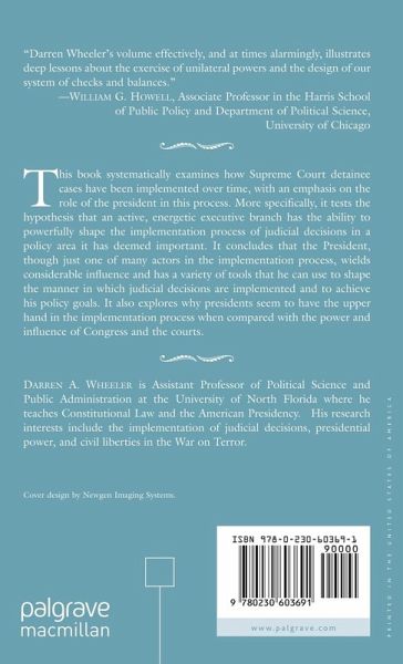 This book examines how Supreme Court detainee cases have been implemented, with emphasis on the role of the president, concluding that an active executive branch has the ability to shape the manner in which judicial decisions are implemented and exploring why presidents have more influence than Congress and the courts.