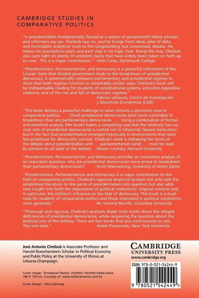 José Antonio Cheibub is Associate Professor and Harold Boeschenstein Scholar in Political Economy and Public Policy at the University of Illinois, Urbana-Champaign. He earned his Ph.D. from the University of Chicago and has previously taught at the University of Pennsylvania and Yale University. He is a co-author of Democracy and Development: Political Institutions and Well-Being in the World, 1950-1990 (Cambridge, 2000), which won the 2001 Woodrow Wilson Foundation Award given by the American Political Science Association. He is also a co-editor of the Democracy Sourcebook (2003). Professor Cheibub has published articles in numerous edited volumes and journals, including Annual Review of Political Science, the British Journal of Political Science, Comparative Political Studies, the Journal of Democracy, and World Politics.