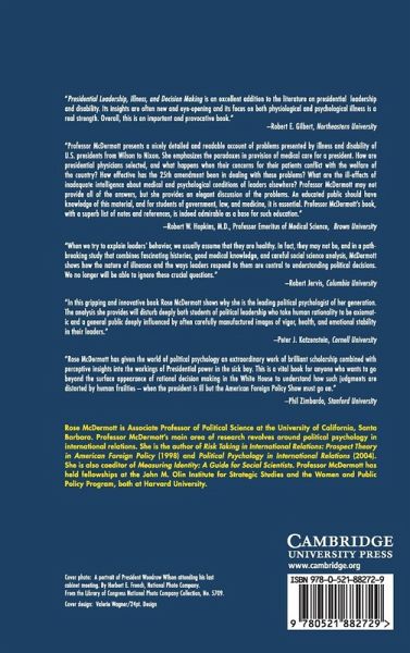 Examines the impact of medical and psychological illness on foreign policy decision making. Illness provides specific, predictable, and recognizable shifts in attention, time perspective, cognitive capacity, judgment, and emotion, which systematically affect impaired leaders. In particular, this book discusses the ways in which processes related to aging, physical and psychological illness, and addiction influence decision making. This book provides detailed analysis of four cases among the American presidency. Woodrow Wilson's October 1919 stroke affected his behavior during the Senate fight over ratifying the League of Nations. Franklin Roosevelt's severe coronary disease influenced his decisions concerning the conduct of war in the Pacific from 1943-1945 in particular. John Kennedy's illnesses and treatments altered his behavior at the 1961 Vienna conference with Soviet Premier Khrushchev. And Nixon's psychological impairments biased his decisions regarding the covert bombing of Cambodia in 1969-1970.
