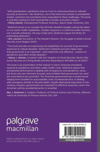 This book is an examination of the manner in which American presidents respond to pandemics and other public health crises. Skidmore argues that presidential performance in dealing with emergencies and pandemics varies, but those who are informed, focused, and confident that government can work are most likely to be successful. As an example, Gerald Ford's "Swine Flu program" is widely derided as incompetent and politically motivated. Closer examination, however, suggests the contrary, demonstrating the potential of government to act quickly and effectively against public health emergencies, even when facing formidable obstacles. The American government has a mixed record ranging from excellent to unacceptable, even counterproductive, in dealing with emergency threats to life and health. Despite ideological arguments to the contrary, however, governments are important to effective responses, and in the American setting, presidential action is essential.