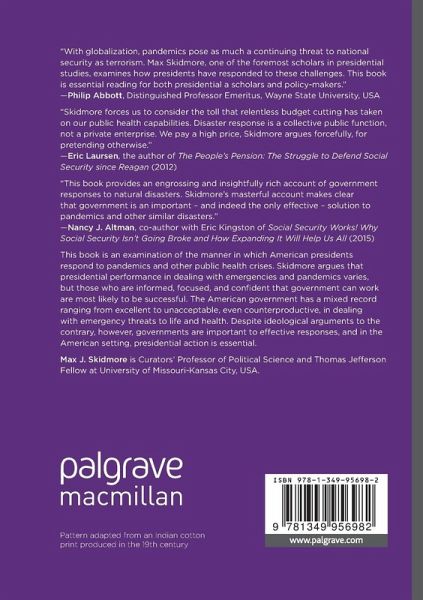 This book is an examination of the manner in which American presidents respond to pandemics and other public health crises. Skidmore argues that presidential performance in dealing with emergencies and pandemics varies, but those who are informed, focused, and confident that government can work are most likely to be successful. As an example, Gerald Ford's "Swine Flu program" is widely derided as incompetent and politically motivated. Closer examination, however, suggests the contrary, demonstrating the potential of government to act quickly and effectively against public health emergencies, even when facing formidable obstacles. The American government has a mixed record ranging from excellent to unacceptable, even counterproductive, in dealing with emergency threats to life and health. Despite ideological arguments to the contrary, however, governments are important to effective responses, and in the American setting, presidential action is essential.