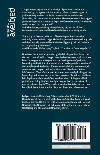 'Ludger Helms expands our knowledge of presidents and prime ministers by this systematic comparison of two different types of parliamentary leaders, the British prime minister and the German chancellor, and the American president. The comparison is thoroughly grounded in political science concepts and literature in two continents, and in research on the ground.' - Richard Rose, University of Strathclyde, UK