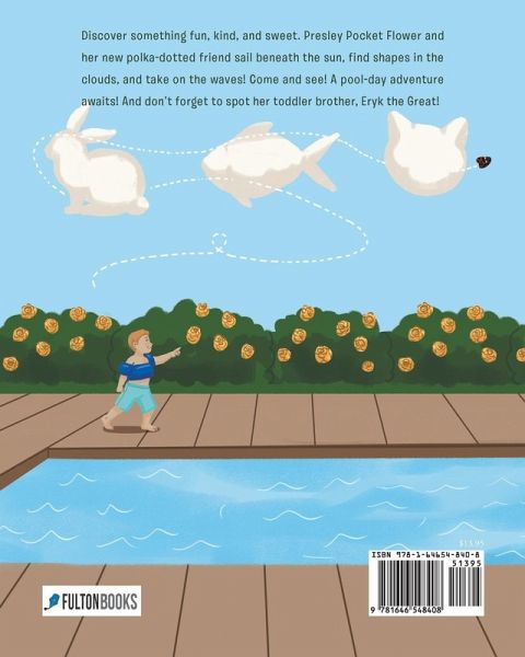 Discover something fun, kind, and sweet. Presley Pocket Flower and her new polka-dotted friend sail beneath the sun, find shapes in the clouds, and take on the waves! Come and see! A pool-day adventure awaits! And dont forget to spot her toddler brother, Eryk the Great! 1