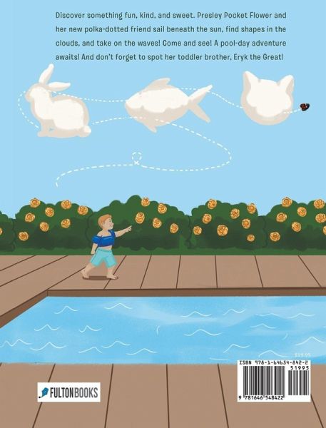 Discover something fun, kind, and sweet. Presley Pocket Flower and her new polka-dotted friend sail beneath the sun, find shapes in the clouds, and take on the waves! Come and see! A pool-day adventure awaits! And dont forget to spot her toddler brother, Eryk the Great! 1