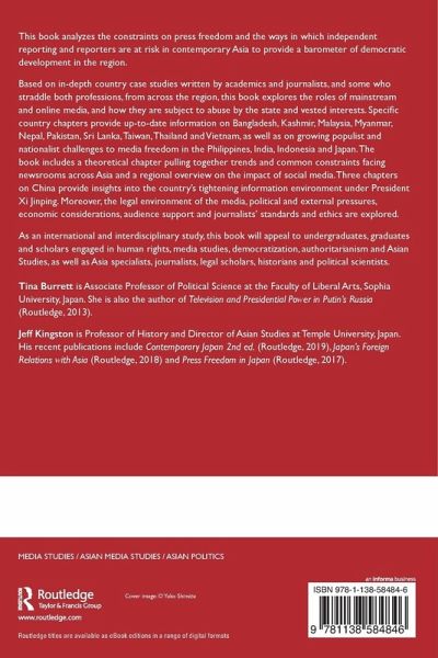 Tina Burrett is Associate Professor of Political Science at the Faculty of Liberal Arts, Sophia University, Japan. She is also the author of Television and Presidential Power in Putin's Russia (Routledge, 2013). Jeff Kingston is Professor of History and Director of Asian Studies at Temple University, Japan. His recent publications include Contemporary Japan 2nd ed. (Routledge, 2019), Japan's Foreign Relations with Asia (Routledge, 2018) and Press Freedom in Japan (Routledge, 2017).