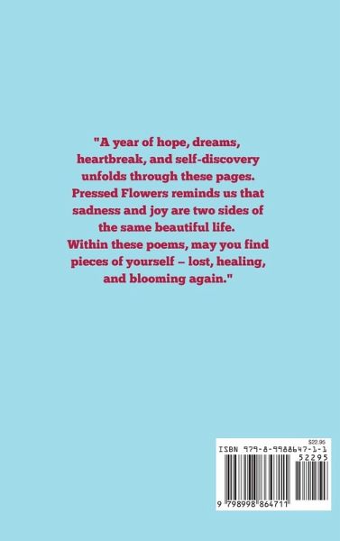 Pressed Flowers is the debut poetry collection by Ashley Lazarz - a heartfelt, vulnerable exploration of one transformative year through love, loss, healing, and self-discovery. Told month by month, beginning in December, the book is structured like a personal journal of emotions. Each chapter captures the shifting seasons of the heart: from falling in love and dreaming boldly, to experiencing heartbreak, depression, grief, and ultimately, growth and peace. Ashley draws from her own lived experiences, offering raw reflections on identity, self-worth, loneliness, and body image. These poems are not written to offer easy answers, but instead to hold space - space for discomfort, joy, sadness, and transformation. Through a range of poetic styles including free verse, prose poetry, and short-form pieces, Pressed Flowers invites readers to feel deeply and reconnect with parts of themselves they may have forgotten or hidden away. This collection speaks to anyone who has ever questioned their place in the world, lost someone they loved, or felt overwhelmed by the beauty and chaos of life. It's a book about becoming - about embracing the mess, holding on to hope, and learning that even the broken parts of us are worthy of love. Ashley's intention with this book is simple but powerful: she hopes you laugh. She hopes you cry. She hopes you allow yourself to feel every word and to sit gently with your own story. More than anything, she hopes Pressed Flowers helps you feel more seen, more vulnerable, and more fully yourself. In a world that often demands perfection and composure, this book offers softness, honesty, and a reminder that healing is not linear - it's layered, delicate, and often pressed into us like petals in a book. Pressed Flowers is not just a poetry collection - it's a companion for anyone walking through their own seasons of change. Whether you're in the middle of letting go or just learning how to hold yourself again, these pages will remind you that you are not alone - and that growth, however slow, is always blooming.