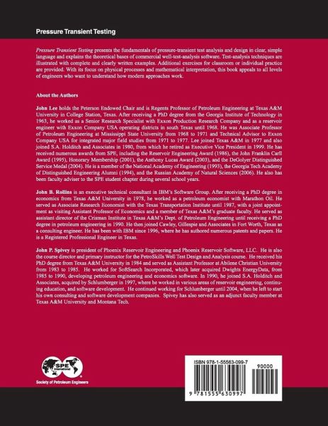 Pressure Transient Testing presents the fundamentals of pressure-transient test analysis and design in clear, simple language and explains the theoretical bases of commercial well-test-analysis software. Test-analysis techniques are illustrated with complete and clearly written examples. Additional exercises for classroom or individual practice are provided. With its focus on physical processes and mathematical interpretation, this book appeals to all levels of engineers who want to understand how modern approaches work. Pressure transient test analysis is a mature technology in petroleum engineering; even so, it continues to evolve. Because of the developments in this technology since the last SPE textbook devoted to transient testing was published, we concluded that students could benefit from a textbook approach to the subject that includes a representative sampling of the more important fundamentals and applications. We deliberately distinguish between a textbook approach, which stresses understanding through numerous examples and exercises dealing with selected fundamentals and applications, and a monograph approach, which attempts to summarize the state-of-the-art in the technology. Computational methods that transient test analysts use have gone through a revolution since most existing texts on the subject were written. Most calculations are now done with commercial software or by spreadsheets or proprietary software developed by users to meet personal needs and objectives. These advances in software have greatly increased productivity in this technology, but they also have contributed to a "black box" approach to test analysis. In this text, we attempt to explain what's in the box, and we do not include a number of the modern tools that enhance individual engineer productivity. We hope, instead, to provide understanding so that the student can use the commercial software with greater appreciation and so that the student can read monographs and papers on transient testing with greater appreciation for the context of the subject. Accordingly, this text is but an introduction to the vast field of pressure transient test analysis.