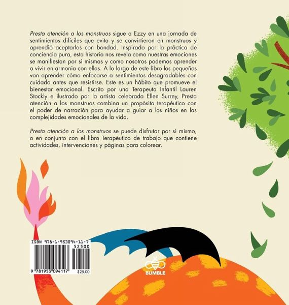 Presta atención a los monstruos sigue a Ezzy en una jornada de sentimientos difíciles que evita y se convirtieron en monstruos y aprendió aceptarlos con bondad. Inspirado por la práctica de conciencia pura, esta historia nos revela como nuestras emociones se manifiestan por sí mismas y como nosotros podemos aprender a vivir en armonía con ellas. A lo largo de este libro los pequeños van aprender cómo enfocarse a sentimientos desagradables con cuidado antes que resistirse. Este es un hábito que promueve el bienestar emocional. Escrito por una Terapeuta Infantil Lauren Stockly e ilustrado por la artista celebrada Ellen Surrey, Presta atención a los monstruos combina un propósito terapéutico con el poder de narración para ayudar a guiar a los niños en las complejidades emocionales de la vida. Presta atención a los monstruos se puede disfrutar por sí mismo, o en conjunto con el libro Terapéutico de trabajo que contiene actividades, intervenciones y páginas para colorear.