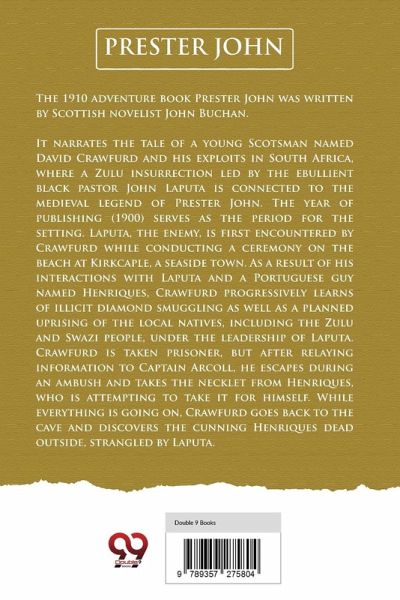 The 1910 adventure book Prester John was written by Scottish novelist John Buchan. It narrates the tale of a young Scotsman named David Crawfurd and his exploits in South Africa, where a Zulu insurrection led by the ebullient black pastor John Laputa is connected to the medieval legend of Prester John. The year of publishing (1900) serves as the period for the setting. Laputa, the enemy, is first encountered by Crawfurd while conducting a ceremony on the beach at Kirkcaple, a seaside town. As a result of his interactions with Laputa and a Portuguese guy named Henriques, Crawfurd progressively…mehr