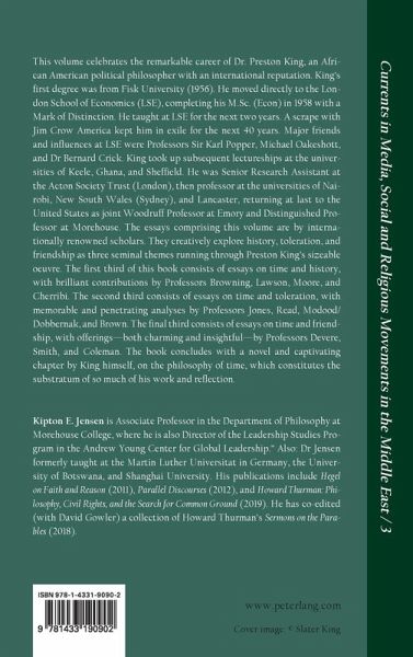 This volume celebrates the remarkable career of Dr. Preston King, an African American political philosopher with an international reputation. King's first degree was from Fisk University (1956). He moved directly to the London School of Economics (LSE), completing his M.Sc. (Econ) in 1958 with a Mark of Distinction. He taught at LSE for the next two years. A scrape with Jim Crow America kept him in exile for the next 40 years. Major friends and influences at LSE were Professors Sir Karl Popper, Michael Oakeshott, and Dr Bernard Crick. King took up subsequent lectureships at the universities of Keele, Ghana, and Sheffield. He was Senior Research Assistant at the Acton Society Trust (London), then professor at the universities of Nairobi, New South Wales (Sydney), and Lancaster, returning at last to the United States as joint Woodruff Professor at Emory and Distinguished Professor at Morehouse. The essays comprising this volume are by internationally renowned scholars. They creatively explore history, toleration, and friendship as three seminal themes running through Preston King's sizeable oeuvre. The first third of this book consists of essays on time and history, with brilliant contributions by Professors Browning, Lawson, Moore, and Cherribi. The second third consists of essays on time and toleration, with memorable and penetrating analyses by Professors Jones, Read, Modood/ Dobbernak, and Brown. The final third consists of essays on time and friendship, with offerings-both charming and insightful-by Professors Devere, Smith, and Coleman. The book concludes with a novel and captivating chapter by King himself, on the philosophy of time, which constitutes the substratum of so much of his work and reflection.