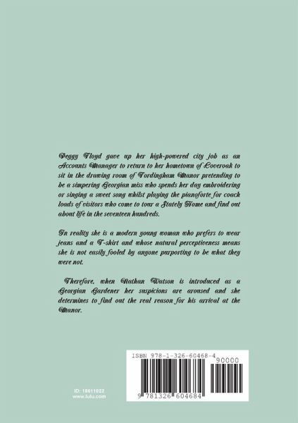 Peggy Floyd gave up her high-powered city job as an Accounts Manager to return to her hometown of Coveroak to sit in the drawing room of Fordingham Manor pretending to be a simpering Georgian miss who spends her day embroidering or singing a sweet song whilst playing the pianoforte for coach loads of visitors who come to tour a Stately Home and find out about life in the seventeen hundreds. In reality she is a modern young woman who prefers to wear jeans and a T-shirt and whose natural perceptiveness means she is not easily fooled by anyone purporting to be what they were not. Therefore, when Nathan Watson is introduced as a Georgian Gardener her suspicions are aroused and she determines to find out the real reason for his arrival at the Manor.