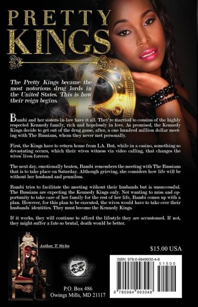 The Pretty Kings became the most notorious drug lords in the United States. This is how their reign begins. Bambi and her sisters in law have it all. They're married to cousins of the highly respected Kennedy family, rich and hopelessly in love. As promised, the Kennedy Kings decide to get out of the drug game, after, a one hundred million dollar meeting with The Russians, whom they never met personally. First, the Kings have to return home from LA. But, while in a casino, something so devastating occurs, which their wives witness via video calling, that changes the wives lives forever. The next day, emotionally beaten, Bambi remembers the meeting with The Russians that is to take place on Saturday. Although grieving, she considers how life will be without her husband and penniless. Bambi tries to facilitate the meeting without their husbands but is unsuccessful. The Russians are expecting the Kennedy Kings only. Not wanting to miss and opportunity to take care of her family for the rest of her life, Bambi comes up with a plan. However, for this plan to be executed, the wives would have to take over their husbands identities. They must become the Kennedy Kings. If it works, they will continue to afford the lifestyle they are accustomed. If not, they might suffer a fate so brutal, death would be better.