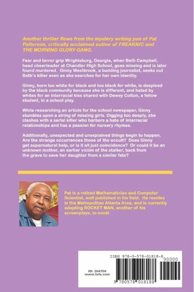 Fear and terror grip a small Southern town when a cheerleader goes missing. Ginny Westbrook, a budding journalist, seeks out the killer even as she searches for her own identity. Digging too deeply and stumbling upon a string of missing girls, she clashes with a serial killer who harbors a hate of interracial relationships and has a passion for nursery rhymes. Are the strange occurrences those of the occult or just coincidence? Or could it be an unknown mother, an earlier victim, back from the grave to save her daughter from a similar fate.