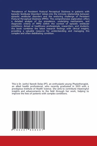 "Prevalence of Persistent Postural Perceptual Dizziness in patients with Episodic Vestibular Disorders" delves into the intricate relationship between episodic vestibular disorders and the enduring challenge of Persistent Postural Perceptual Dizziness (PPPD). This comprehensive exploration offers a detailed analysis of the prevalence, underlying mechanisms, and diagnostic criteria of PPPD within the context of episodic vestibular conditions. Aimed at healthcare professionals, researchers, and students, this book combines the latest research findings with clinical insights, providing a valuable resource for understanding and managing this complex and often debilitating condition.