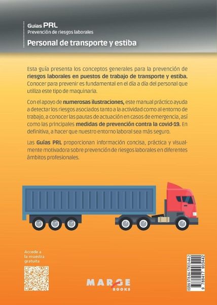 Guía práctica para prevenir riesgos en el transporte y la estiba, con medidas frente a la covid?19 Esta guía presenta los conceptos generales para la prevención de riesgos laborales en puestos de trabajo de transporte y estiba. Conocer para prevenir es fundamental en el día a día del personal que utiliza este tipo de maquinaria. Con el apoyo de numerosas ilustraciones, este manual práctico ayuda a detectar los riesgos asociados tanto a la actividad como al entorno de trabajo, a conocer las pautas de actuación en casos de emergencia, así como las principales medidas de prevención contra la covid-19. En definitiva, a hacer que nuestro entorno laboral sea más seguro. Las Guías PRL proporcionan información concisa, práctica y visualmente motivadora sobre prevención de riesgos laborales en diferentes ámbitos profesionales. Medidas contra la covid-19. Riesgos de la conducción Riesgos de la estiba y el trincaje Cómo actuar en casos de emergencia.