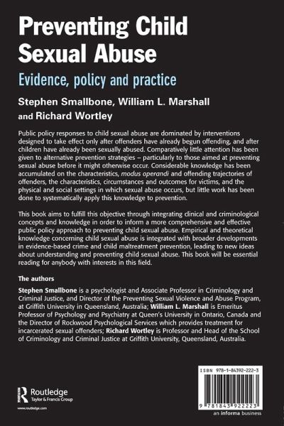 Public policy responses to child sexual abuse are dominated by interventions designed to take effect only after offenders have already begun offending, and after children have already been sexually abused. Comparatively little attention has been given to alternative prevention strategies - particularly to those aimed at preventing sexual abuse before it might otherwise occur. Considerable knowledge has been accumulated on the characteristics, modus operandi and persistence of offenders, the characteristics, circumstances and outcomes for victims, and the physical and social settings in which sexual abuse occurs, but little work has been done to systematically apply this knowledge to prevention. This book aims to fulfill this objective through integrating clinical and criminological concepts and knowledge to inform a more comprehensive and effective public policy approach to preventing child sexual abuse. Empirical and theoretical knowledge concerning child sexual abuse is integrated with broader developments in evidence-based crime and child maltreatment prevention, leading to new ideas about understanding and preventing child sexual abuse. This book will be essential reading for anybody with interests in this field.