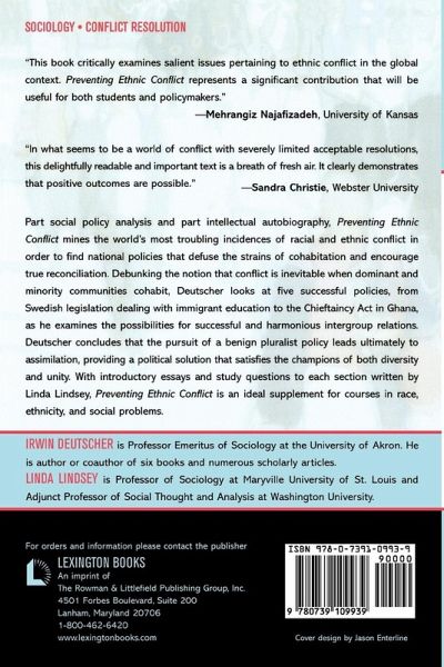 This renamed and revised paperback edition of Irwin Deutscher's Accommodating Diversity shares most of the book's original content but reframes the work with teachers and students in mind. With introductory essays to each section written by Linda Lindsey that place the material within sociological theory, its problem solving focus, and provocative study questions, Preventing Ethnic Conflict is an ideal supplement for courses in race, ethnicity, and social problems.