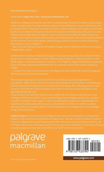 "De Búrca's striking and innovative text offers a nuanced analysis of political violence used to pursue ethno-nationalist aims. Her cases, Northern Ireland and Israel/Palestine, may be traditional but her conclusions offer an important road map to scholars, students and policy practitioners on the means by which such violence can be prevented and minimised and ultimately replaced by political action. De Búrca convincingly argues that generic and de-contextualised models for addressing political violence fail to capture the depth and complexity of the phenomenon. The model proposed, rooted in social movement theory, offers greater understanding of political violence as well as identifying practical policy tools to address it." - Ben Tonra, University College Dublin