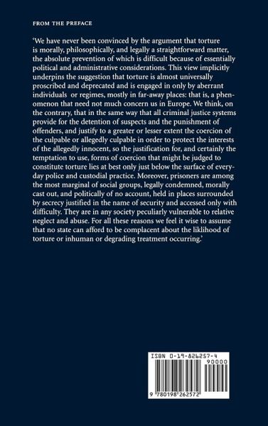 * Table of Cases * Table of Principal Treaties, Declarations, Codes of Conduct, and other International Instruments * 1: The Decline and Re-emergence of Torture * 2: Torture and the Liberal Democratic State: Three Modern Case Studies * 3: The Prohibition of Torture and Inhuman or Degrading Treatment or Punishment * 4: The Origins and Drafting of the European Convention for the Prevention of Torture and Inhuman or Degrading Treatment or Punishment * 5: The CPT: membership, Back-up Services, and Modus Operandi * 6: Findings of Ill-Treatment * 7: Police Custody: Procedural Safeguards * 8: Conditions of Detention * 9: Current Assessment and Future Prospects * Appendices * 1: Texts * 2: Explanatory Report * 3: Rules of Procedure * 4: Tables of Signatures and Ratifications * 5: Lists of CPT Visits and of Resulting Reports and Responses, 1990-97 * 6: CPT membership * 7: CPT Statements of Standards * 8: CPT Document Citation * Bibliography * Index