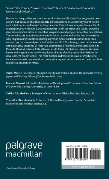 Foreword; Sadako Ogata 1. Introduction: Disentangling the Linkages between Horizontal Inequalities and Political Institutions; Sakiko Fukuda-Parr, Arnim Langer and Yoichi Mine 2. Comparing Political Institutions: Institutional Choice and Conflict Prevention in Africa; Yoichi Mine, Mari Katayanagi and Satoru Mikami 3. 'Twin Countries' with Contrasting Institutions: Post-Conflict State-Building in Rwanda and Burundi; Shinichi Takeuchi 4. Horizontal Inequalities, Ethnic Politics, and Violent Conflict: The Contrasting Experiences of Ghana and Cote d'Ivoire; Arnim Langer 5. Beyond Ad hoc Power-Sharing: Comparing South Africa and Zimbabwe; Yoichi Mine 6. Is Ethnic Autonomy Compatible with a Unitary State? The Case of Uganda and Tanzania; Yuichi Sasaoka and Julius E. Nyang'oro 7. The Politics of Identity, Horizontal Inequalities, and Conflict in Kenya; Mwangi S. Kimenyi 8. Managing Horizontal Inequalities and Violent Conflicts in Nigeria; Ukoha Ukiwo 9. The Relationship between Objective and Subjective Horizontal Inequalities: Evidence from Five African Countries; Arnim Langer and Satoru Mikami 10. Findings and Implications: The Role of Development Cooperation; Frances Stewart, Thandika Mkandawire and Mari Katayanagi