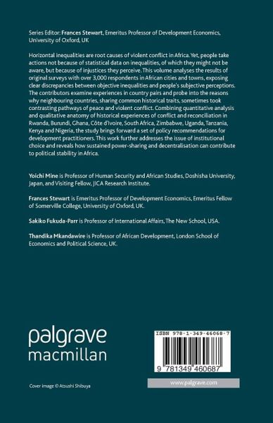 Horizontal inequalities are root causes of violent conflict in Africa. Yet, people take actions not because of statistical data on inequalities, of which they might not be aware, but because of injustices they perceive. This volume analyses the results of original surveys with over 3,000 respondents in African cities and towns, exposing clear discrepancies between objective inequalities and people's subjective perceptions. The contributors examine experiences in country pairs and probe into the reasons why neighbouring countries, sharing common historical traits, sometimes took contrasting pathways of peace and violent conflict. Combining quantitative analysis and qualitative anatomy of historical experiences of conflict and reconciliation in Rwanda, Burundi, Ghana, Côte d'Ivoire, South Africa, Zimbabwe, Uganda, Tanzania, Kenya and Nigeria, the study brings forward a set of policy recommendations for development practitioners. This work further addresses the issue of institutional choice and reveals how sustainable power-sharing and decentralisation contribute to political stability in Africa.