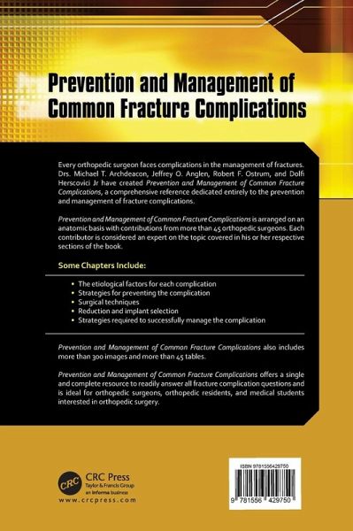 Every orthopaedic surgeon faces complications in the management of fractures. This is a comprehensive reference dedicated entirely to the prevention and management of fracture complications. It is arranged on an anatomic basis with contributions from more than 45 orthopaedic surgeons. Each contributor is considered an expert on the topic covered in their respective sections of the book.