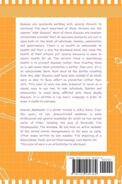 It is an indisputable fact that most of the deaths resulting from these killer diseases could have been avoided if all hands were on deck at all levels to focus on prevention rather than cure. This piece of work has been prepared to serve as a simple and easy to use tool to help individuals, families and communities, to avoid being afflicted with these deadly diseases. It is intended for use by people outside medical environment, therefore the message is conveyed in a very simple and comprehensible manner to everyone. Complex medical terminologies are avoided as much as possible so as to make this book valuable to everyone.