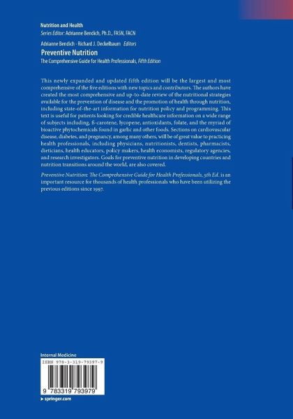 "This is the fifth edition of book on preventive nutrition that was first published in 1997. ... This could be a nice addition for nutrition graduate students as well as for hospital and other health institution libraries. ... This edition, like the previous one, is quite interesting, informative, and up to date. It would be a good addition to any healthcare professional's resources." (Amy Hess-Fischl, Doody's Book Reviews, April, 2016)