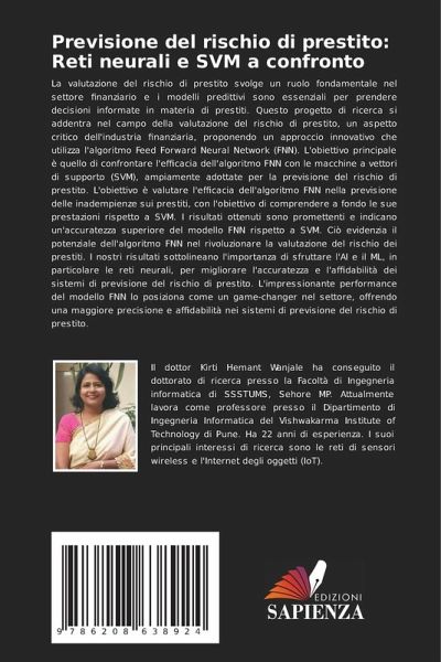 La valutazione del rischio di prestito svolge un ruolo fondamentale nel settore finanziario e i modelli predittivi sono essenziali per prendere decisioni informate in materia di prestiti. Questo progetto di ricerca si addentra nel campo della valutazione del rischio di prestito, un aspetto critico dell'industria finanziaria, proponendo un approccio innovativo che utilizza l'algoritmo Feed Forward Neural Network (FNN). L'obiettivo principale è quello di confrontare l'efficacia dell'algoritmo FNN con le macchine a vettori di supporto (SVM), ampiamente adottate per la previsione del rischio di prestito. L'obiettivo è valutare l'efficacia dell'algoritmo FNN nella previsione delle inadempienze sui prestiti, con l'obiettivo di comprendere a fondo le sue prestazioni rispetto a SVM. I risultati ottenuti sono promettenti e indicano un'accuratezza superiore del modello FNN rispetto a SVM. Ciò evidenzia il potenziale dell'algoritmo FNN nel rivoluzionare la valutazione del rischio dei prestiti. I nostri risultati sottolineano l'importanza di sfruttare l'AI e il ML, in particolare le reti neurali, per migliorare l'accuratezza e l'affidabilità dei sistemi di previsione del rischio di prestito. L'impressionante performance del modello FNN lo posiziona come un game-changer nel settore, offrendo una maggiore precisione e affidabilità nei sistemi di previsione del rischio di prestito.