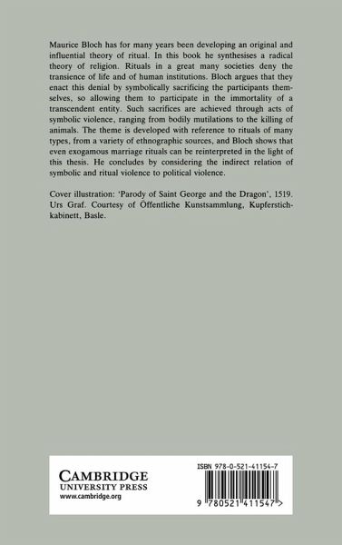 Maurice Bloch has for many years been developing an original and influential theory of ritual. In this book he synthesises a radical theory of religion. Rituals in a great many societies deny the transience of life and of human institutions. Bloch argues that they enact this denial by symbolically sacrificing the participants themselves, so allowing them to participate in the immortality of a transcendent entity. Such sacrifices are achieved through acts of symbolic violence, ranging from bodily mutilations to the killing of animals. The theme is developed with reference to rituals of many types, from a variety of ethnographic sources, and Bloch shows that even exogamous marriage rituals can be reinterpreted in the light of this thesis. He concludes by considering the indirect relation of symbolic and ritual violence to political violence.