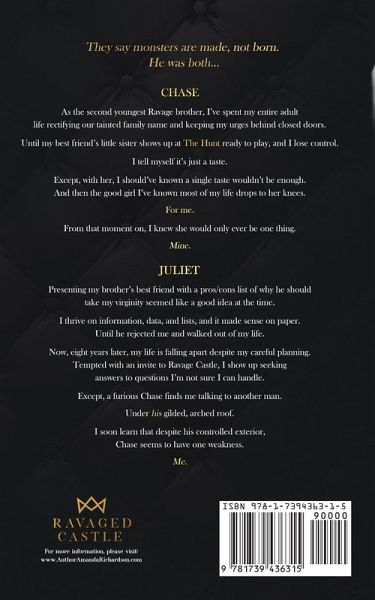 They say monsters are made, not born. He was both... Chase As the second youngest Ravage brother, I've spent my entire adult life rectifying our tainted family name and keeping my urges behind closed doors. Until my best friend's little sister shows up at The Hunt ready to play, and I lose control. I tell myself it's just a taste. Except, with her, I should've known a single taste wouldn't be enough. And then the good girl I've known most of my life drops to her knees. For me. From that moment on, I knew she would only ever be one thing. Mine. Juliet Presenting my brother's best friend with a pros/cons list of why he should take my virginity seemed like a good idea at the time. I thrive on information, data, and lists, and it made sense on paper. Until he rejected me and walked out of my life. Now, eight years later, my life is falling apart despite my careful planning. Tempted with an invite to Ravage Castle, I show up seeking answers to questions I'm not sure I can handle. Except, a furious Chase finds me talking to another man. Under his gilded, arched roof. I soon learn that despite his controlled exterior, Chase seems to have one weakness. Me. Prey Tell is a full-length, brother's best friend/billionaire romance with primal play themes. It is book one in the Ravaged Castle series. All books can be read as standalones. Warning: This book contains a possessive, jealous antihero, explicit sexual situations, and strong language. There is no cheating, and there is a HEA.