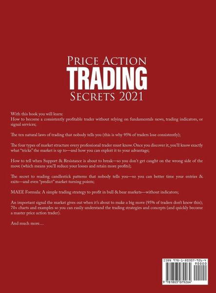 With this book you will learn: How to become a consistently profitable trader without relying on fundamentals news, trading indicators, or signal services;The ten natural laws of trading that nobody tells you (this is why 95% of traders lose consistently);The four types of market structure every professional trader must know. Once you discover it, you'll know exactly what "tricks" the market is up to-and how you can exploit it to your advantage;How to tell when Support & Resistance is about to break-so you don't get caught on the wrong side of the move (which means you'll reduce your losses and retain more profits);The secret to reading candlestick patterns that nobody tells you-so you can better time your entries & exits-and even "predict" market turning points;MAEE Formula: A simple trading strategy to profit in bull & bear markets-without indicators;An important signal the market gives out when it's about to make a big move (95% of traders don't know this);70+ charts and examples so you can easily understand the trading strategies and concepts (and quickly become a master price action trader).And much more...