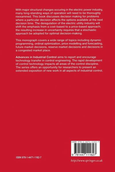 The series Advances in Industrial Control aims to report and encourage technology transfer in control engineering. The rapid development of control technology impacts all areas of the control discipline. New theory, new controllers, actuators, sensors, new industrial processes, computer methods, new applications, new philosophies . . . , new challenges. Much of this development work resides in industrial reports, feasibility study papers and the reports of advanced collaborative projects. The series offers an opportunity for researchers to present an extended exposition of such new work in all aspects of industrial control for wider and rapid dissemination. Deregulation of electricity markets is a worldwide activity with leading and distinctive developments occurring in the European and US markets. The immediate impact of these changes is felt in the higher levels of the power production hierarchy where tools to aid short-term economic decision making are needed. At the lower levels of the production control hierarchy the impact is to demand much more flexible unit operation so that the determined short-term goals can be met. Allen and Illic have produced this useful monograph on the decision algorithms needed to determine unit commitment proflles over the shorter time frame of hours and days. The method of dynamic programming has been used and the work covers modelling, cost function and construction, an introduction to dynamic programming and a detailed assessment of its use. The monograph comes complete with programs in Appendix D and with other appendices giving the necessary supporting theory.