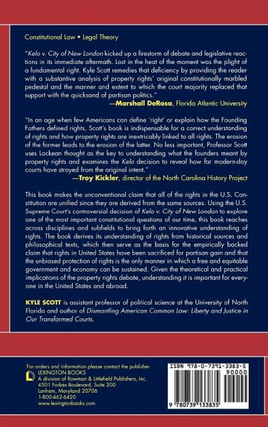 In an age when few Americans can define "right" or explain how the founding fathers defined rights, Scott's book is indispensable for a correct understanding of rights and how property rights are inextricably linked to all rights. The erosion of the former leads to the erosion of the latter. No less important, Professor Scott uses Lockean thought as the key to understanding what the founders meant by property rights and examines the Kelo decision to reveal how far modern-day courts have strayed from the original intent. -- Troy Kickler, director of the North Carolina History Project An excellent historical, legal, and theoretical analysis of property rights and their place in an ordered society... It is a bracing good read... Recommended. CHOICE Kelo v. City of New London kicked up a firestorm of debate and legislative reactions in its immediate aftermath. Lost in the heat of the moment was the plight of a fundamental right. Dr. Kyle remedies that deficiency by providing the reader with a substantive analysis of property rights' original constitutionally marbled pedestal and the manner and extent to which the court majority replaced that support with the quicksand of partisan politics. -- Marshall L. DeRosa, Political Scientist at Florida Atlantic University and author of several books
