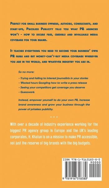 Getting good media coverage for your business isn't cheap... * The cost of a full-page advert in a national newspaper, i.e. Daily Mail: £30,000+ / $36,000+ USD * The average cost of hiring a PR agency: approx. £3,000 / $3790 USD per month * Hiring an in-house PR manager - £2,500+ / $3,158 USD per month Doesn't it make more sense to do it yourself? If so, then this book is for you. Perfect for small businesses, authors, consultants and start-ups, in this in-depth book, Priceless Publicity, I tell you what other PR agencies won't - how to secure free, credible and invaluable media coverage for your brand. It's your PR kit in a book. With over 30 easily digestible chapters, you will learn everything you need to know to be able to become your business' own PR guru. You can learn in your own time - at your own pace - whilst still running your business. This book teaches you how to get money-can't-buy media coverage wherever you are in the world, and whatever line of business you are in. There's no classroom theory here, it's all practical and packed full of real examples of media coverage I've secured. So no more: - trying and failing to interest journalists in your business' stories - wasted hours spent Googling how to write a press release - seeing your competitors get coverage you deserve - guesswork Instead, try an alternative solution that really works - empowering yourself to do your own PR, build your brand, and grow your business through the power of priceless publicity. This book is perfect for you if you're a: * Start-up * Author * Small business owner * Consultant * Entrepreneur * Freelancer And the transferable skills in this book apply to ANY industry. Why I created this book... I created this book to help businesses like yours reap the benefits of media publicity, without having to spend a fortune on an agency. As a small business owner myself, I understand that being lean is key, but at the same time, you need to invest to grow and market your brand. So this book is the perfect solution - rather than investing money and outsourcing your PR, you're investing in yourself by doing your own. So what are you waiting for? Go ahead and give your business the greatest chance of success with this book. It will be the best investment you've made.