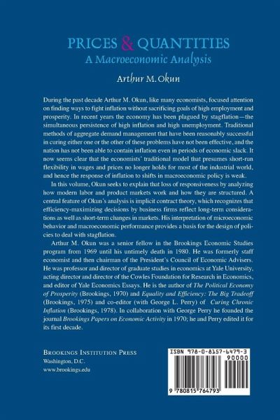 During the past decade Arthur M. Okun, like many economists, focused attention on finding ways to fight inflation without sacrificing goals of high employment and prosperity. In recent years the economy has been plagued by stagflationthe simultaneous persistence of high inflation and high unemployment. Traditional methods of aggregate demand management that have been reasonably successful in curing either one or the other of these problems have not been effective, and the nation has not been able to contain inflation even in periods of economic slack. It now seems clear that the economists’ traditional model that presumes short-run flexibility in wages and prices no longer holds for most of the industrial world, and hence the response of inflation to shifts in macroeconomic policy is weak. In this volume Okun seeks to explain that loss of responsiveness by analyzing how modern labor and product markets work and how they are structured. A central feature of Okun’s analysis is implicit contract theory, which recognizes that efficiency-maximizing decisions by business firms reflect long-term considerations as well as short-term changes in markets. His interpretation of microeconomic behavior and macroeconomic performance provides a basis for the design of policies to deal with stagflation.