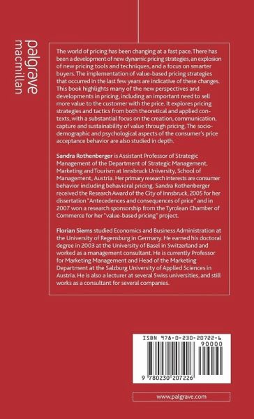 The world of pricing has been changing at a fast pace. There has been a development of new dynamic pricing strategies, an explosion of new pricing tactics, and a focus on smarter buyers. This book focuses on those developments and highlights new perspectives for pricing strategies.